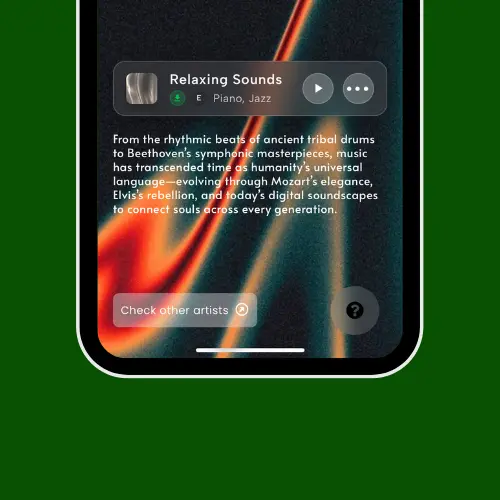 An elegant, customizable music player supporting self-hosted MP3s, Spotify, SoundCloud, Mixcloud, and external URLs. Features glass blur or solid backgrounds, copy link and SMS sharing, download options, exclusive song badges, album art display, and smooth dropdown menus — giving your audio content a professional, branded listening experience directly on your page.