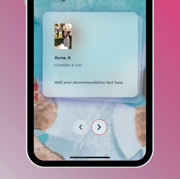 Stack testimonials and recommendations in a stunning layered card format with glass-blur effects, swipe or fade animations, and fully customisable navigation. Visitors experience social proof in an interactive, memorable way — far beyond static review grids. Build trust instantly with elegant, animated testimonial displays that feel native to premium websites.