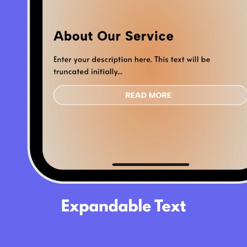 A product page with a long description initially truncated to keep the layout tidy. A services page showing a summary with “Read More” expanding full service details. A team bio section keeping profiles concise until clicked. A FAQ section with expandable answer text. A blog sidebar showing post excerpts with modal full-text previews. And many more content management uses.