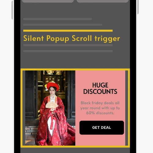 Great for displaying discount offers after 50% page scroll, showing newsletter signups when visitors reach your blog content, triggering exit-intent style messages mid-scroll, promoting related products after users view key sections, displaying cookie notices at scroll milestones, upsell prompts on eCommerce pages, and many more other uses.
