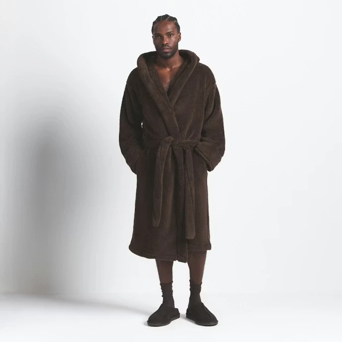Brown Men Plush Mens Robe